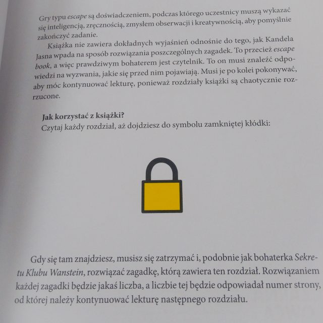 Pozycja wydaje się być ciekawa. I pierwszy raz czytam, że gdzieś się kłódka, trzeba odgadnąć zagadkę “stronę” i czytać dalej na innej.
