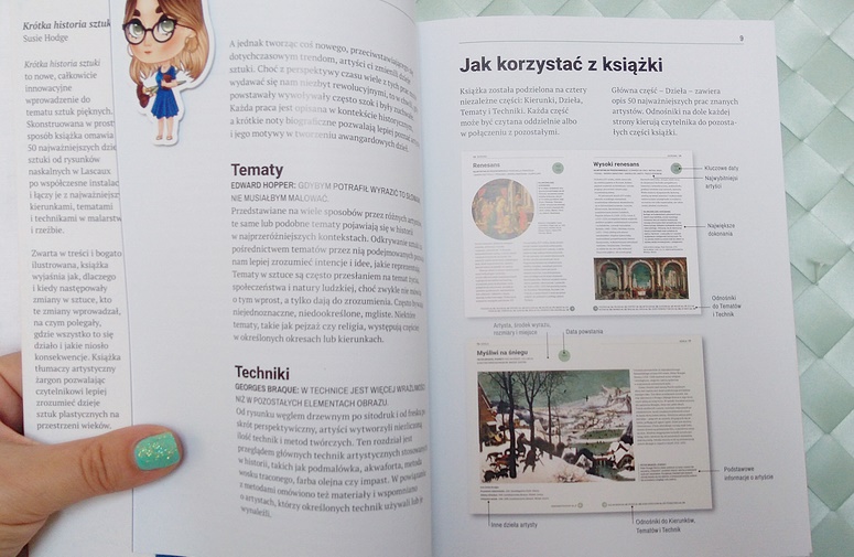 - SPIS TREŚCI, podzielony jest na: kierunki, dzieła, tematy, techniki. To kolejny plus w takim przewodniku. Pięknie, prosto i na temat. Nie ma szans, abyś gdzieś zabłądziła!